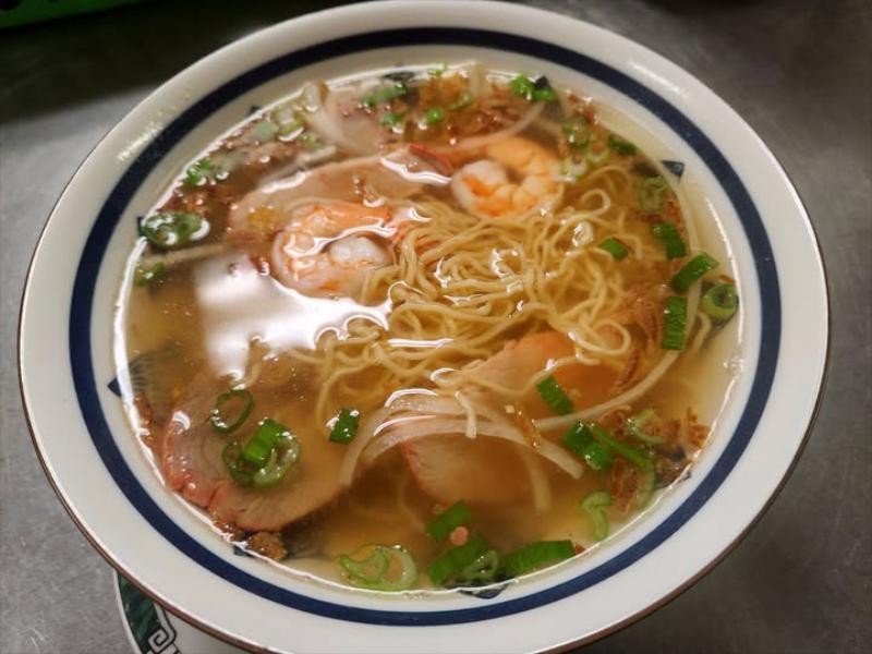 Pictured: V9. Mi Nuoc - Fresh egg noodle soup with shrimp and roast pork